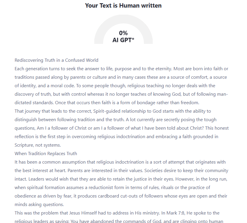 The journey that leads to the correct, Spirit-guided relationship to God starts with the ability to distinguish between following tradition and the truth. A few people are currently posing some tough questions, Am I a follower of Christ or am I a follower of what I have been told about Christ? This honest reflection is the first step in overcoming religious indoctrination and embracing a faith grounded in Scripture, not systems.